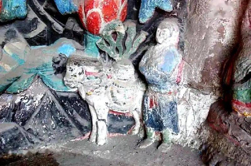 这就是曾到泸县考察的梅林教授发现的携猴取经像。长年致力于石窟艺术研究的梅林,在2010年所著《四川泸县延福寺北宋石刻造像考察简记》中写到:“它是迄今为止年代最早的携猴取经像,比金代陕北石窟中的玄奘取经像早了几十年,更是西夏晚期敦煌同类作品的鼻祖,十分值得珍视。”