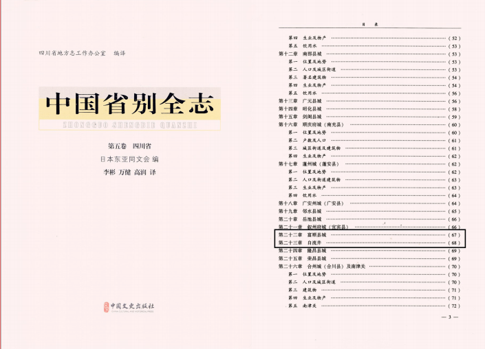 四川省地方志工作办公室编译《中国省别全志·四川省》封面及目录(部分)