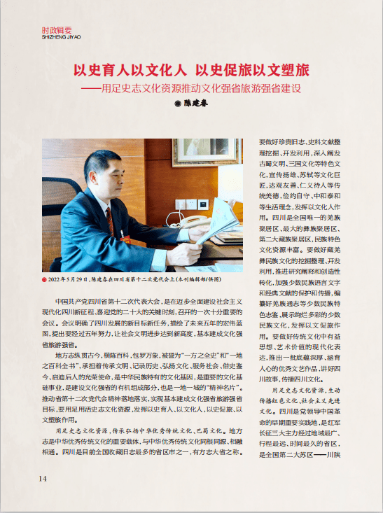 作者:陈建春(中国共产党四川省第十二次代表大会代表,四川省地方志工作办公室党组书记、主任)