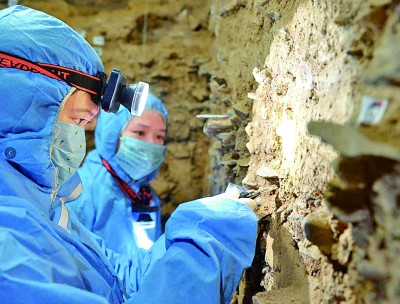 甘肃白石崖溶洞遗址古DNA分析沉积物样品的采样 资料图片