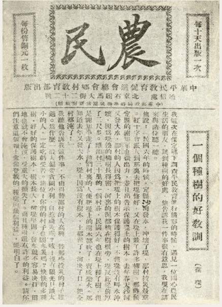 中华平民教育促进会总会乡村教育部出版的《农民》报(苗勇 供图)