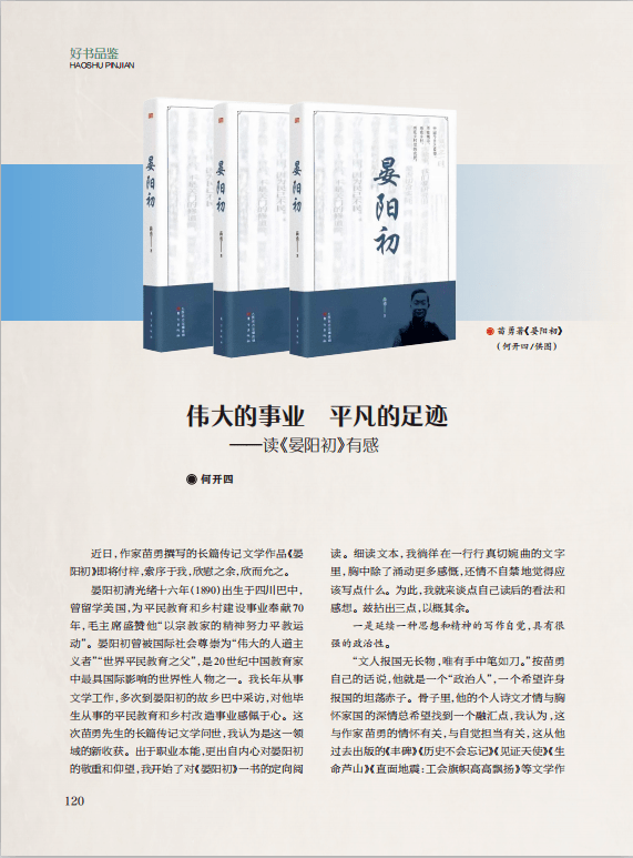 【书评】伟大的事业 平凡的足迹——读《晏阳初》有感‖何开四