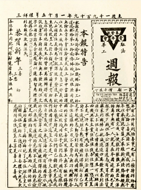 晏阳初创办的《驻法华工周报》第一期(苗勇 供图)