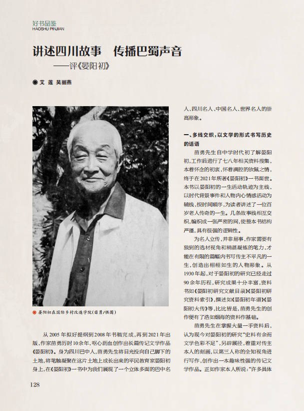【书评】讲述四川故事 传播巴蜀声音——评《晏阳初》‖艾莲 吴丽燕