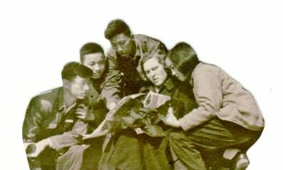 1955年,方梦之(左三)与同学、外教合影 图片由作者提供