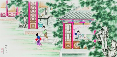 宝玉顺脚一径来到潇湘馆,信步走入,只见凤尾森森,龙吟细细,悄无人声。走至窗前,一缕幽香从碧纱窗中暗暗透出。宝玉便将脸贴在纱窗上,往里看时,耳内忽听得细细的长叹了一声道:“每日家情思睡昏昏。”谭凤嬛绘