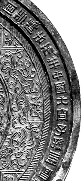 图① 国博藏长沙出土西汉鎏金“中国大宁”四神博局镜铭文局部 霍宏伟摄