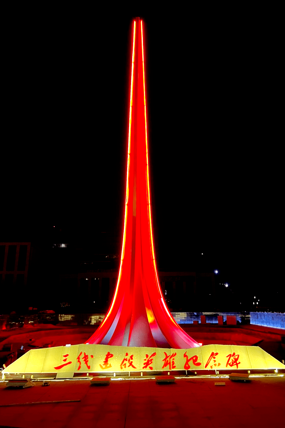 2022年12月26日,三线建设英雄纪念碑在攀枝花市三线文化广场落成亮灯(图片来源:三线视点)