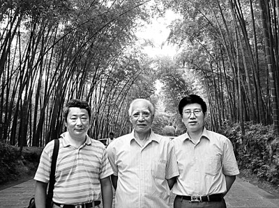 孙玉文(左)、卢烈红(右)与郭锡良合影。图片为作者提供