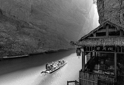 1月28日,游人在湖北鹤峰县屏山旅游景区乘船游玩。新华社发
