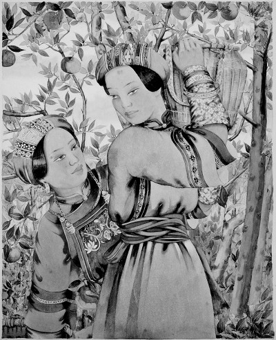 庞薰琹以自己切实的学术研究和艺术探索,为唤起民族自信心和民族文化的自觉意识而努力工作。1939年11月,他与民族语言学家芮逸夫赴贵州调查西南少数民族的风俗及艺术,以拍摄照片、手绘图画和文字记录的方式进行深入详细的整理,搜集到近400件珍贵的民族民间服饰,为创作《贵州山民图》系列作品积累了第一手素材,如今《贵州山民图》已然成为中国美术史上的典范之作。著名的《中国图案集》,也是在此时开始整理绘制的。
