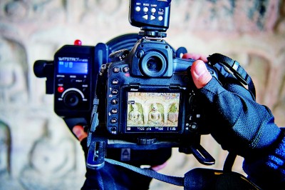 工作人员在云冈石窟第17窟通过近景摄影测量技术采集影像数据。新华社发