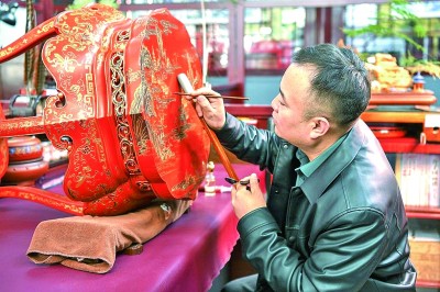 手艺人在制作平遥推光漆器。梁生仁摄/光明图片