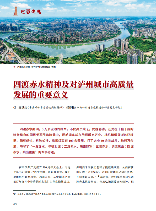 【论坛】四渡赤水精神及对泸州城市高质量发展的重要意义‖廖洪兰 任春艳