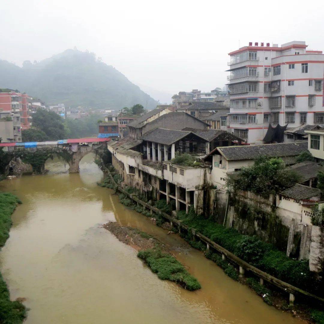 中国工农红军川南游击纵队战斗过的地点——江安县红桥镇(右)与兴文县玉屏乡(左)交界沿河街景