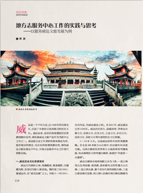 【论坛】地方志服务中心工作的实践与思考——以服务威远文旅发展为例‖周游