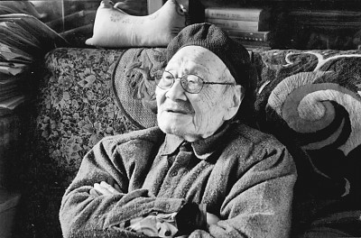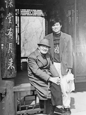 1998年,95岁的钟敬文(左)与本文作者在北京陶然亭公园。