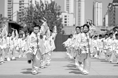 河南嵩山少林塔沟武校的学生在上课。新华社发