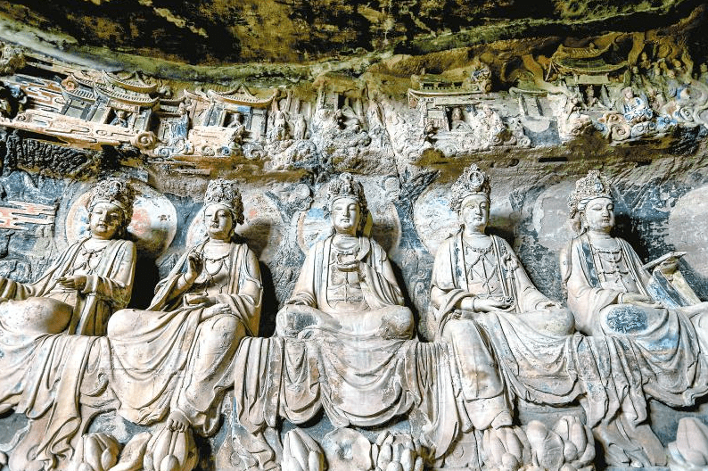 华严洞有明确的开凿时间记录,始于赵宋立国的建隆元年(公元960年),因龛窟正壁上刻立高达5米多的华严三圣而得名。上世纪80年代初,这儿曾发生过一次窟顶坍塌事件,还好,佛像并未受到严重损坏。