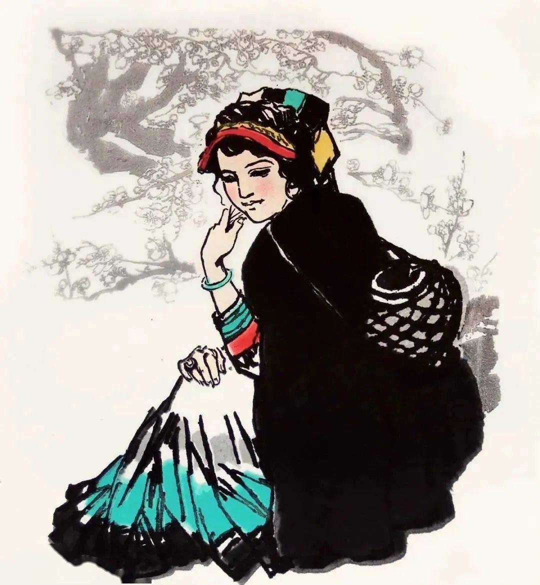 《三月》 水印木刻 阿鸽 作(图片来源:巴蜀画派)