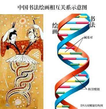 生物基因的两股链条呈双螺旋平行结构,形态相同。以此类比,书画基因的书法与绘画链条必须形态相近,才能相互配合、相互协同、相互支撑、相互促进。