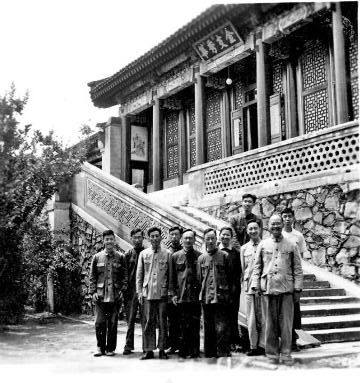 1955年秋,北大汉语教研室教师在颐和园合影。左起:潘兆明、梁东汉、周祖谟、唐作藩、魏建功、杨伯峻、姚殿芳、黄伯荣、林焘、王力、吉常宏。 图片由作者提供