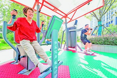 安徽合肥市庐阳经济开发区的居民正在智能健身器材上锻炼身体。赵明摄/光明图片