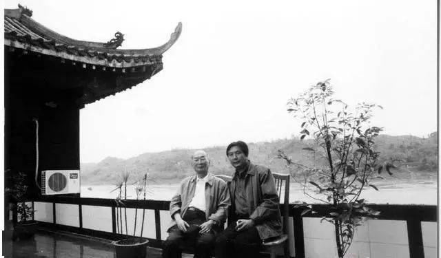2004年岱峻(右)与李济之子李光谟在李庄长江边(岱峻 供图)