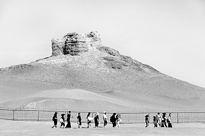 8月6日,游客在甘肃省敦煌市阳关景区游览。新华社发