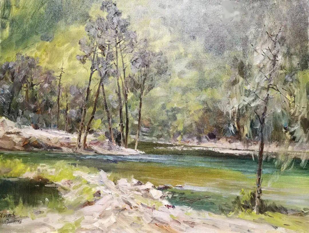 《青潭幽幽》(布面油画) 2022年 杜方晓 作(蓬州闲士摄于2023迎新春成都画院年度美术作品展,图片来源:四川方志图库)
