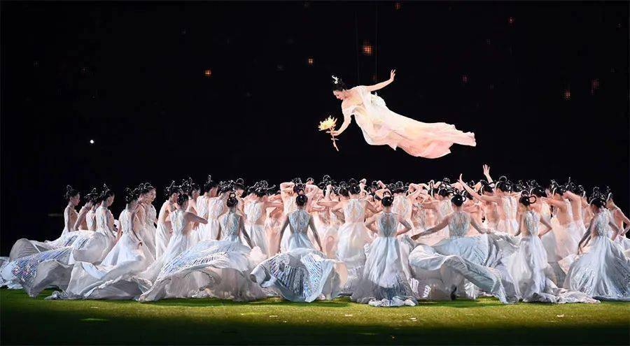 2023年10月8日,杭州第19届亚洲运动会闭幕式在杭州奥体中心体育场举行。图为演员在闭幕式上表演,大美华夏风尚(新华社记者 黄宗治 摄)