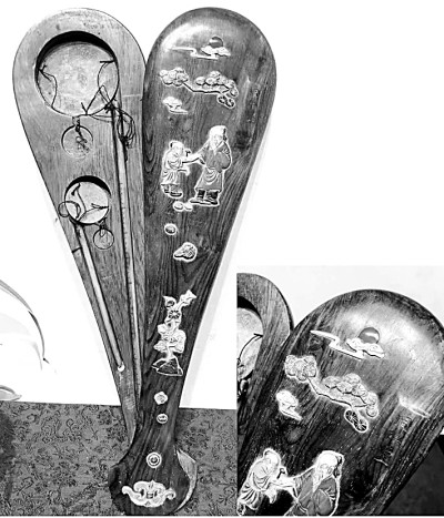 其三是工艺精细。秤盒往往刻有精美图案,形状多是琵琶、如意等,装有锁扣固定,以免戥子秤滑出掉落。有些盒内还用丝绒等作为铺衬,外盒上配有挂绳或者皮袋,设计和制作工艺十分精巧,不仅确保了精确的计量,还具备较高的观赏价值,是我国古代工匠精神的一种体现。