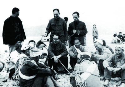 1982年,吕骥(戴眼镜者)在陕西安康调查“汉江号子”。作者供图