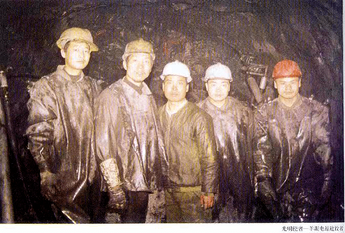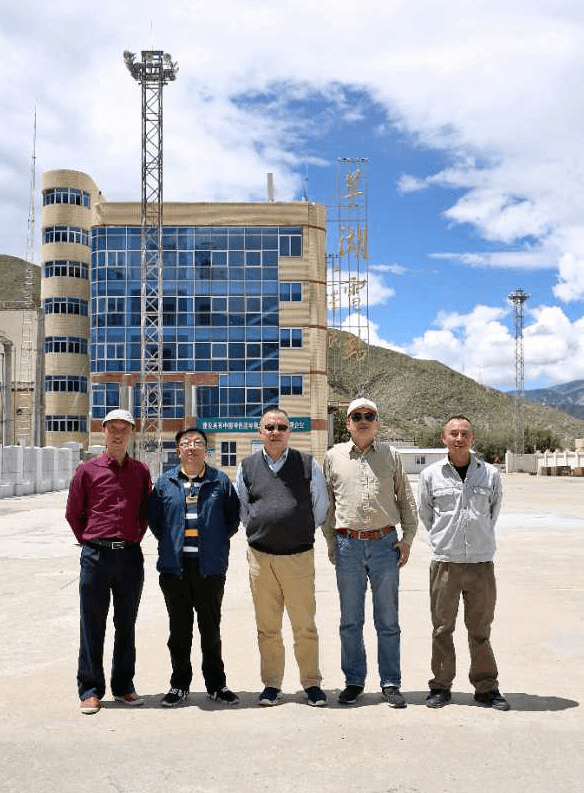 2020年8月23日,贺贵成(中)与首长熊任重(左二)、熊铧(右二)、肖琢凡(左一)和羊湖电站职工龚学伍(右一)在羊湖电站合影
