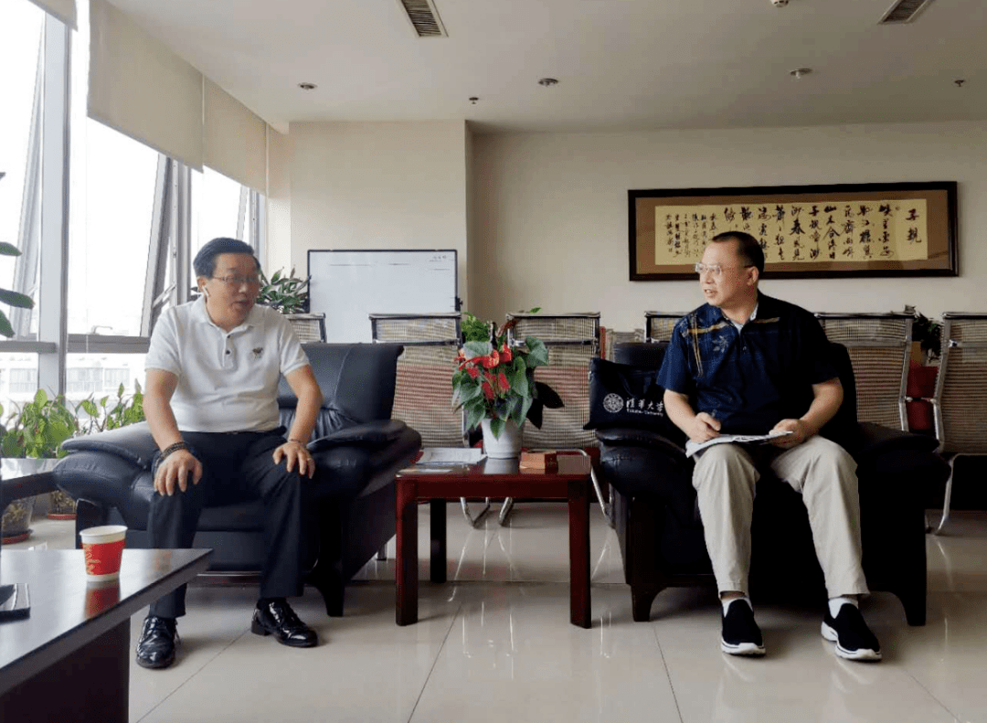 2020年6月3日,贺贵成(右)采访当年建设羊湖电站的警务处处长熊任重(左)