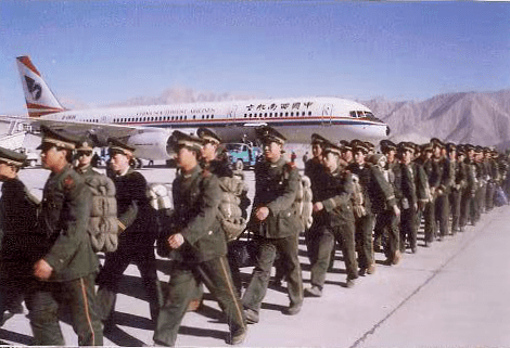 1989年9月,官兵们集结成都,乘坐飞机,开赴羊湖电站建设工程的情景
