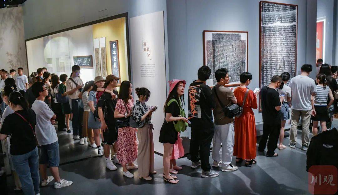 观众排队参观成都博物馆“汉字中国——方正之间的中华文明”展(川观新闻记者 向宇 摄)