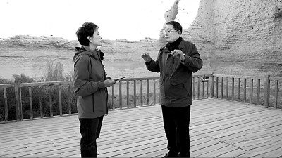 演讲人张国刚教授(右)与主持人张小琴教授在玉门关前对谈。资料图片