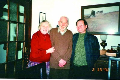 2002年,潘文国(右)在英国拜访《红楼梦》英译者霍克斯及其夫人。作者供图