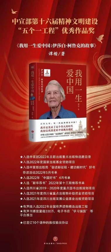 终于拜读完成都市金牛区作家协会会员谭楷老师的著作《我用一生爱中国:伊莎白·柯鲁克的故事》(天地出版社出版,下称《我用一生爱中国》)。掩书沉思,感慨万千。这部反响强烈、引起巨大轰动的传记体报告文学,不仅承载了伊莎白百年人生的厚度,蕴含了伊莎白对中国共产党、中国人民的情感深度,更展示了真实、立体、全面的中国历史宽度。