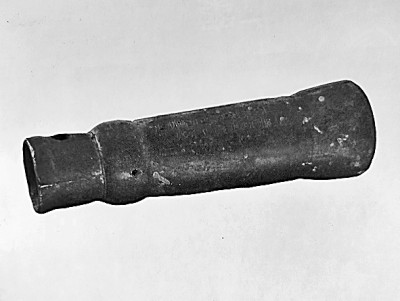 第二种是“罐子式”。这是根据《金史·赤盏合喜传》的记载:“其守城之具有火砲名震天雷者,铁罐盛药,以火点之,砲起火发,其声如雷,所爇围半亩之上,火点著甲铁皆透。”这种“震天雷”从描述上看与重庆地区出土南宋铁火砲实物十分接近。