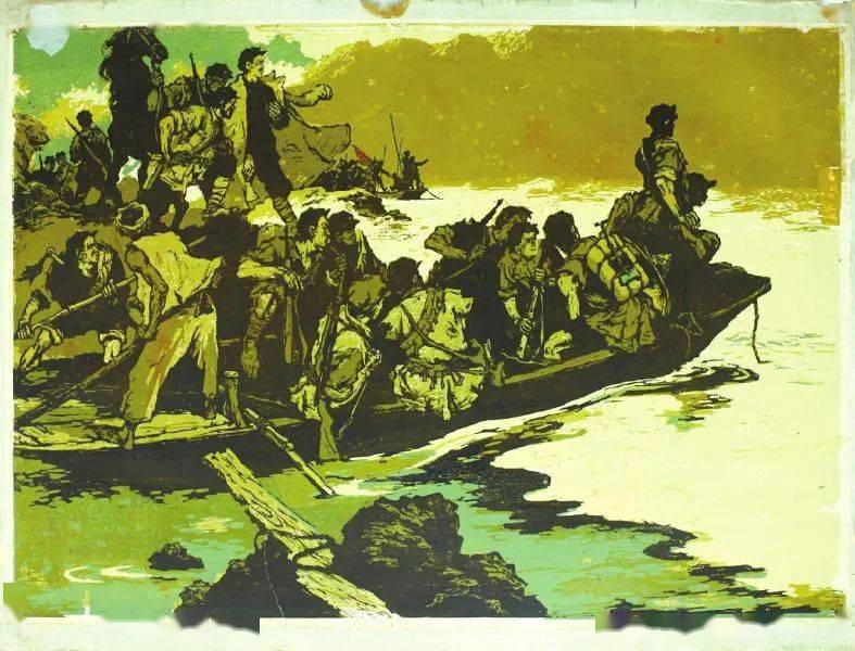巧渡金沙江,套色木刻,袁吉中 作 1961年(图源:四川日报)