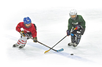 1月27日,山东烟台市福山区首届中小学生冰上项目校际联赛开赛。图为比赛中的小选手们。孙文潭摄(影像中国)