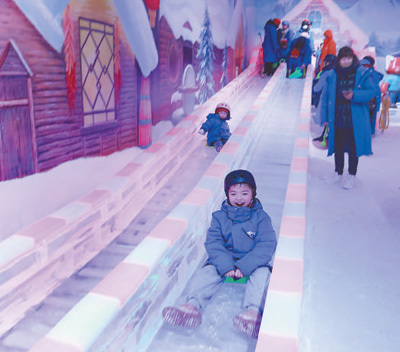2月16日,游客在江苏南通市森迪冰雪乐园感受冰雪世界的魅力。许丛军摄(人民视觉)