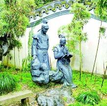 上海大观园内“宝黛共读西厢”雕塑 资料图片
