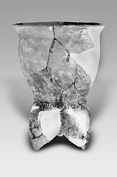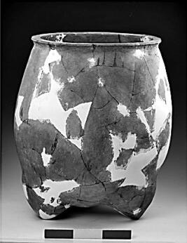 西头遗址南头地点H154储粮窖穴出土的陶三足瓮。资料图片