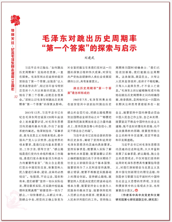 【论坛】毛泽东对跳出历史周期率“第一个答案”的探索与启示‖刘建武