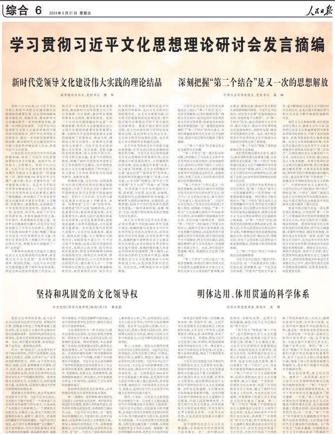 习近平总书记在文化传承发展座谈会上指出:“‘第二个结合’是又一次的思想解放,让我们能够在更广阔的文化空间中,充分运用中华优秀传统文化的宝贵资源,探索面向未来的理论和制度创新。”这一重要论述深刻阐明了“第二个结合”的伟大意义,为我们掌握思想和文化主动、打开创新空间、推进中国式现代化提供了根本遵循。