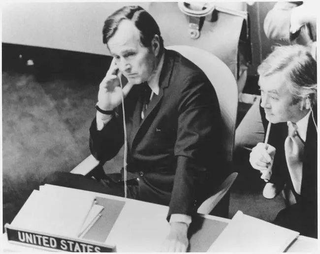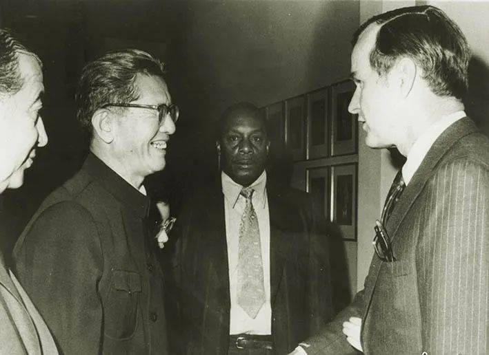 然而,布什还算是一位比较明智的政治人物。他知道,打不败的对手是可以做朋友的。为了减少日后与中国同事打交道的尴尬,他通过联合国礼宾司司长科尔莱的安排,使他能够在乔冠华率团进入会议大厅的途中,进行一次“偶遇”。当科尔莱陪同乔冠华一行走到在一张桌边打电话的布什附近时,科尔莱向前紧走两步,将布什介绍给乔冠华。布什赶快向乔冠华伸出手来握手致意,说:“你好,团长先生!”乔冠华很有礼貌地回答“你好,大使先生!”此时几个美国记者赶紧拍下了这一意味深长的镜头。这个小小的插曲,对布什来说,心情多少还是放松了一些。尽管在这次会上遭到了一些国家的直接批评指责和乔冠华的“算账”,但在那种氛围里,布什也只能是正襟危坐。
