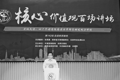 为深入学习贯彻习近平文化思想,认真落实全国宣传思想文化工作会议精神,贯彻落实习近平总书记在文化传承发展座谈会上的重要讲话精神,由中宣部宣教局、光明日报社共同主办的“核心价值观百场讲坛”围绕文化传承发展这一主题,持续策划开展系列宣讲。本场讲坛来到陕西省榆林市图书馆,讲述石峁遗址的发现过程与重要意义,感悟中华五千年文明史。